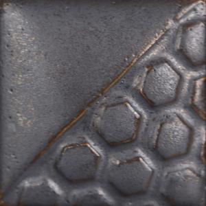 Kägla 6 oxidation (1240 °C): Färgen förändras till metalliskt svart som bryter över struktur och samlas i ett matt metalliskt grått. Ökad rörlighet. Ytproblem kan förekomma. Ej livsmedelssäker.