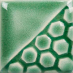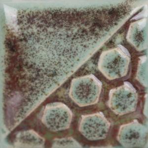 Kägla 6 oxidation (1240 °C): Färgen blir teal. Ökad rörlighet. Ytproblem kan förekomma. Ej livsmedelssäker.