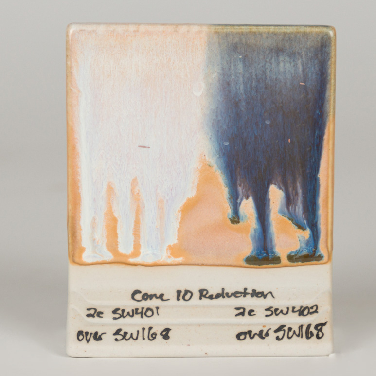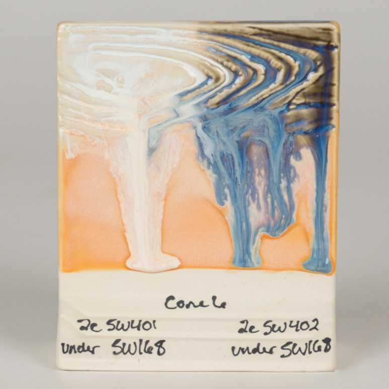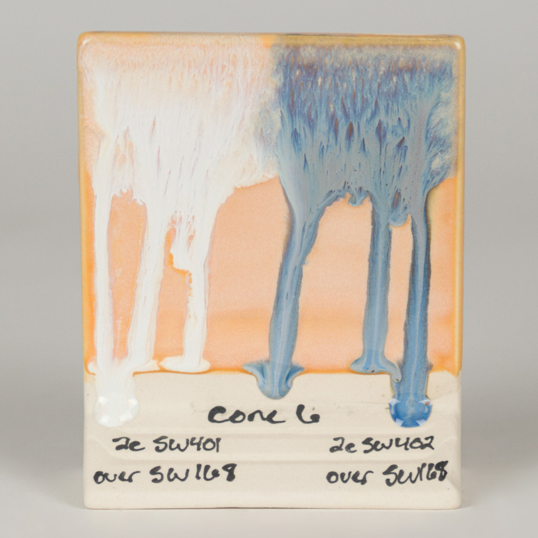 Kägla 6 oxidation (1230°C): Coral Sands är en semi-opak glansig glasyr som visar nyanser av orange, gult och rosa. Glasyrens variation beror på appliceringen. Ju tjockare applicering, desto mer homogen blir färgen. Glasyren blir genomskinlig där den är tunnare och poolar mörkare runt ytor med textur.
