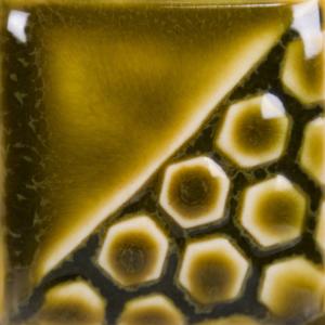 Kägla 06 (1000°C) oxidation: Foliage Green är en glansig gulgrön glasyr som bryts mot en mörkare gulgrön. Halvtransparent vid 3 lager. Lämplig för matservis.