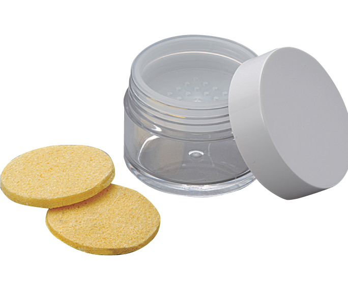 Denna fiffiga burk har två plan: På den övre håller du silverlera mjuk. På det undre planet blir hård silverlera mjuk igen. Varje plan har en svamp som behåller fukten.
