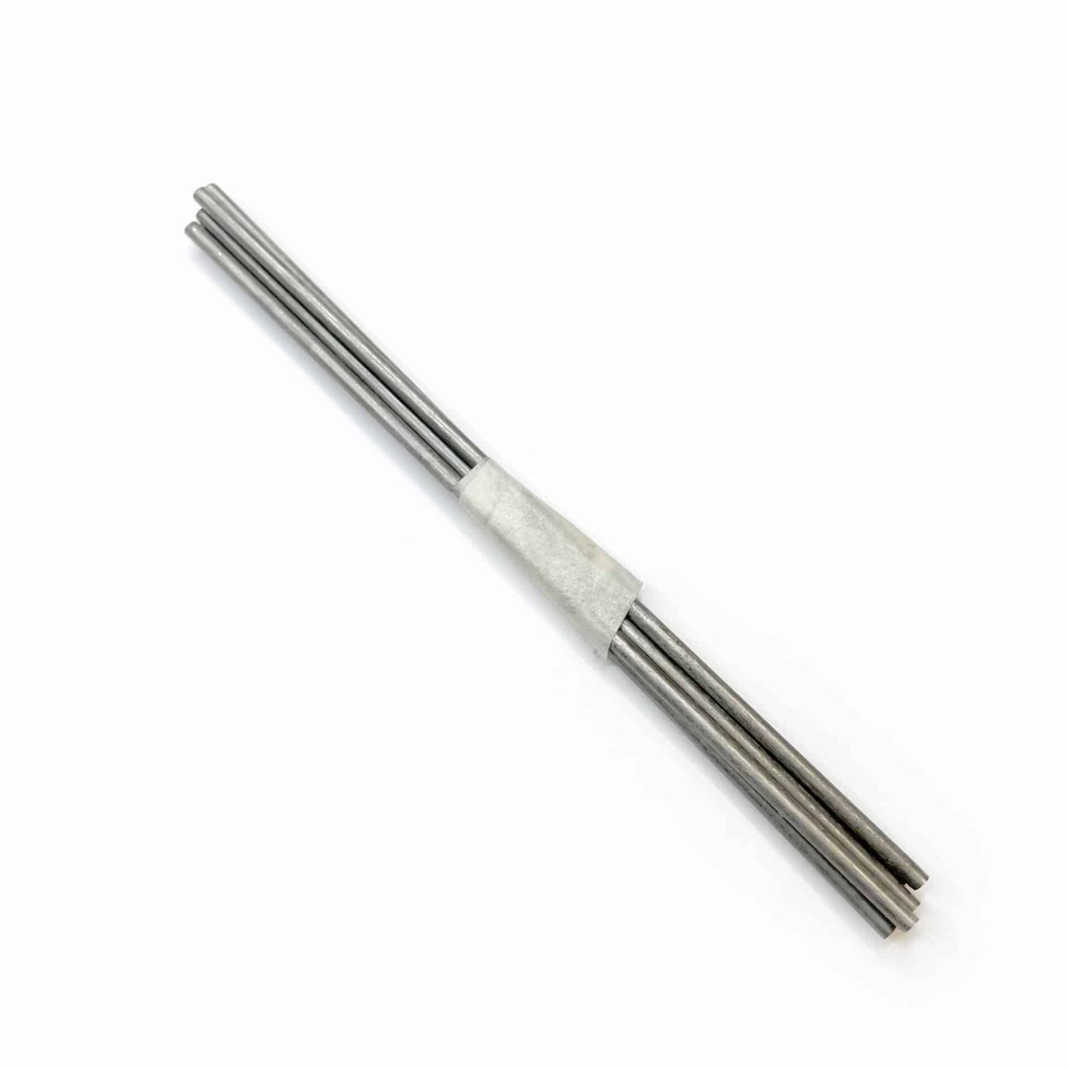 Kanthaltråd / Högtemperatur tråd (Gauge 9) för att bränna glaserade pärlor och liknande. Behandla trådarna med kilnwash eller plattengobe innan du sätter på pärlorna (bränn fast kilnwash med en skröjbränning) för att undvika att glasyren från pärlorna fastnar på trådarna. Används om och om igen, klarar 1240° C men inte Raku bränning. Trådarna är ca 15 cm långa och har en diameter på ca 3 mm. Tråden skall inte belastas med mer än 2,5 g per 2,5 cm för att undvika deformering av tråden under bränningen.