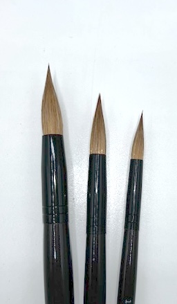 Ett kinesiskt penselset med tre olika storlekar penslar med en lackad träskaft. Penselns borste är en blandning av natur- och syntethår vilket gör att de ta upp glasyrpartiklar på ett bra sätt utan att borsten förlorar sin stabilitet. 22 cm långa. Storlekar: 4, 6, 8.