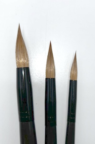Ett kinesiskt penselset med tre olika storlekar penslar med en lackad träskaft. Penselns borste är en blandning av natur- och syntethår vilket gör att de ta upp glasyrpartiklar på ett bra sätt utan att borsten förlorar sin stabilitet. 25 cm långa. Storlekar: 10, 14, 18.