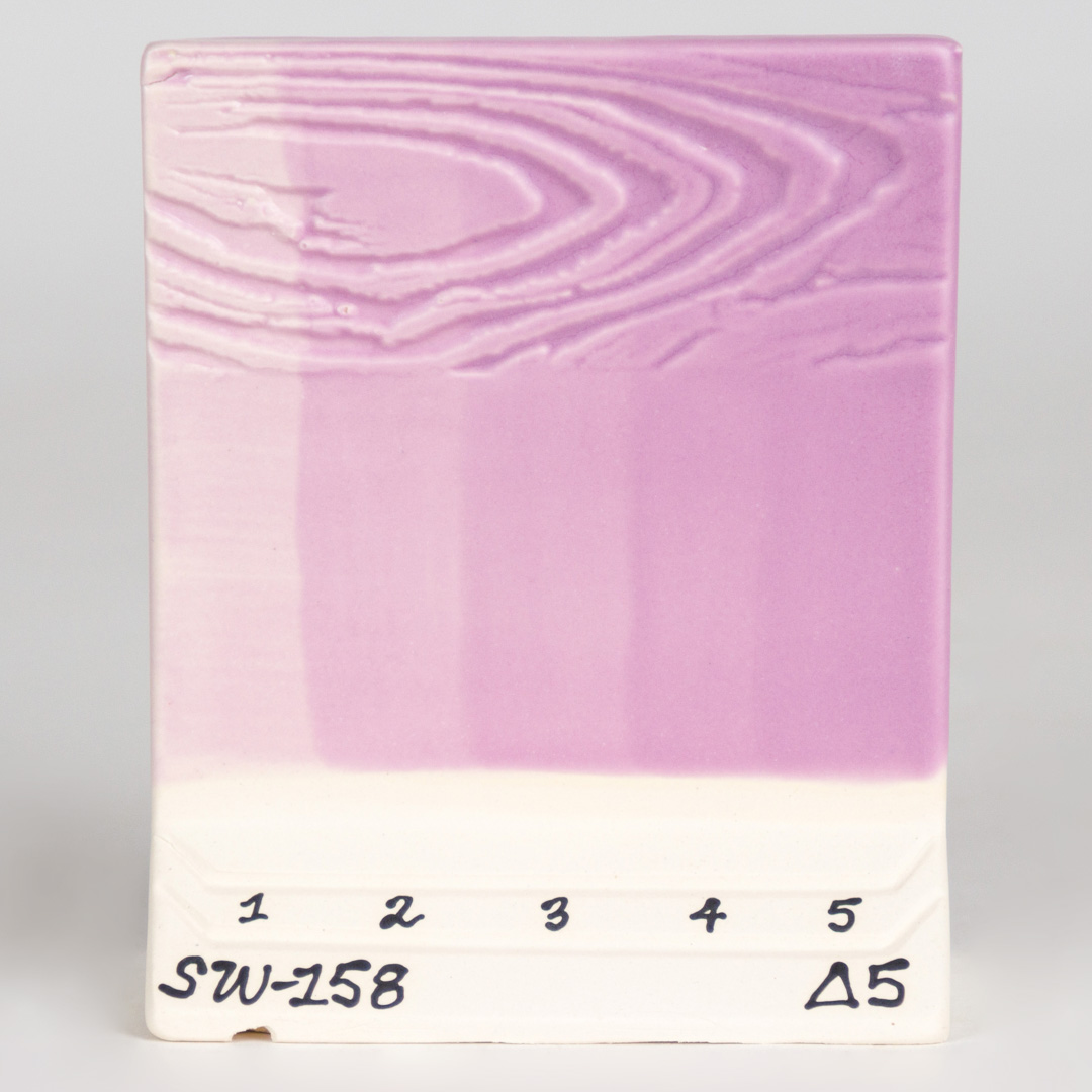 Kägla 6 Oxidation (1230°C): Lilac Matte är en semi-opaque matt lila glasyr. Glasyrens yta bryts över texturer: ju mer uttalad yta, desto mer kommer glasyr att samlas runt dessa texturer. Glasyrens brytning skapar mörkare områden där den samlas.