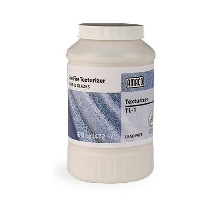 Applicera Low Fire Texturizer TL-1 över vilken lergodsglasyr som helst och få varierande snygga effekter på keramiken. Texturen på keramiken varierar beroende på vilken lergodsglasyr används (blank, matt eller med kristaller). Low Fire Texturizer kan användas på eller mellan glasyrlagren och ger på det sättet en oöndlig möjlighet att skapa olika effekter. 1040°C, 473 ml.