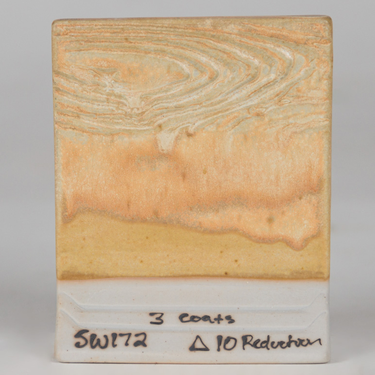 Kägla 6 oxidation (1230°C): Macadamia är en krämig vaniljfärgad matt glasyr som ger accenter av guld. Vi rekommenderar att man bränner våra matta glasyre till kägla 6 för att få en satinmatt finish.