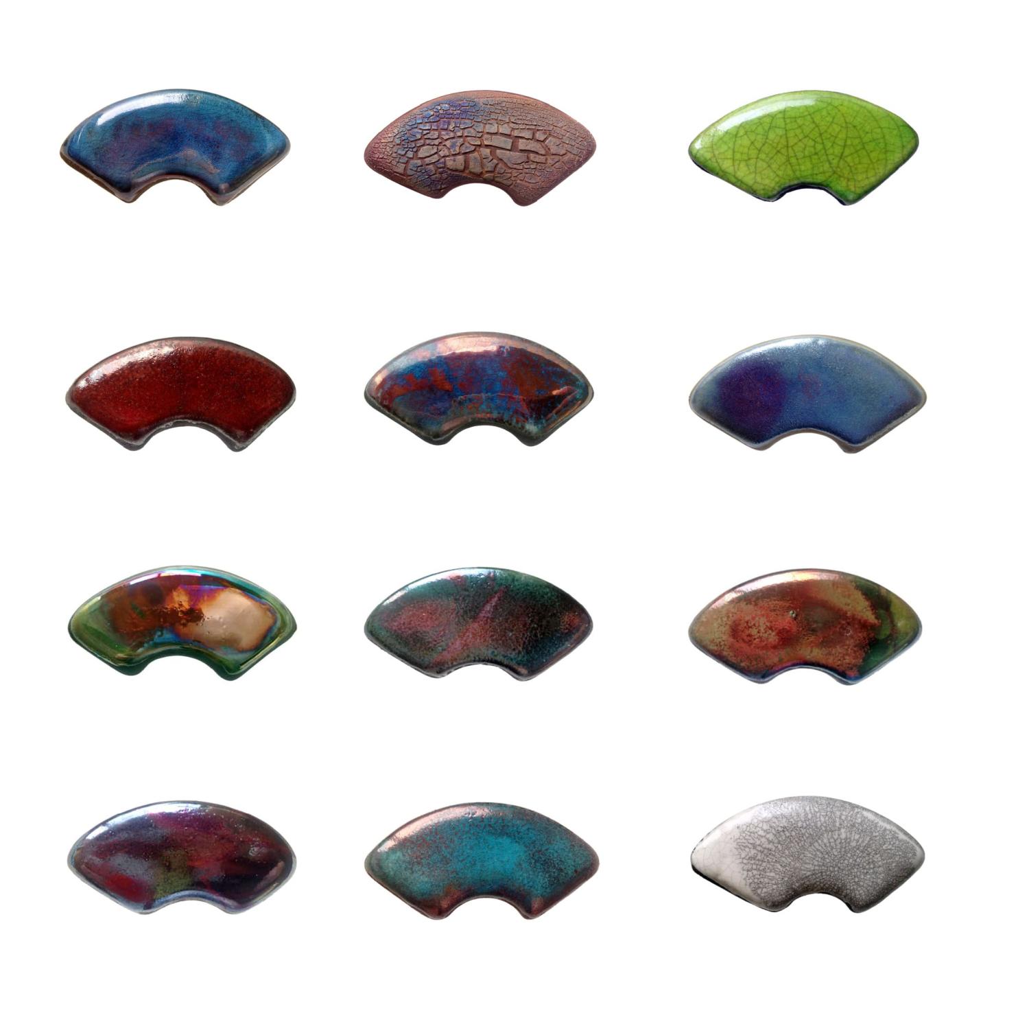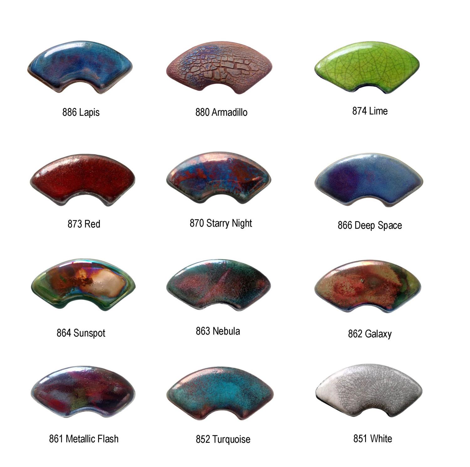 Dessa Raku-glasyrer har utvecklats för bränning i både el- och gasugnar vid 950°C.