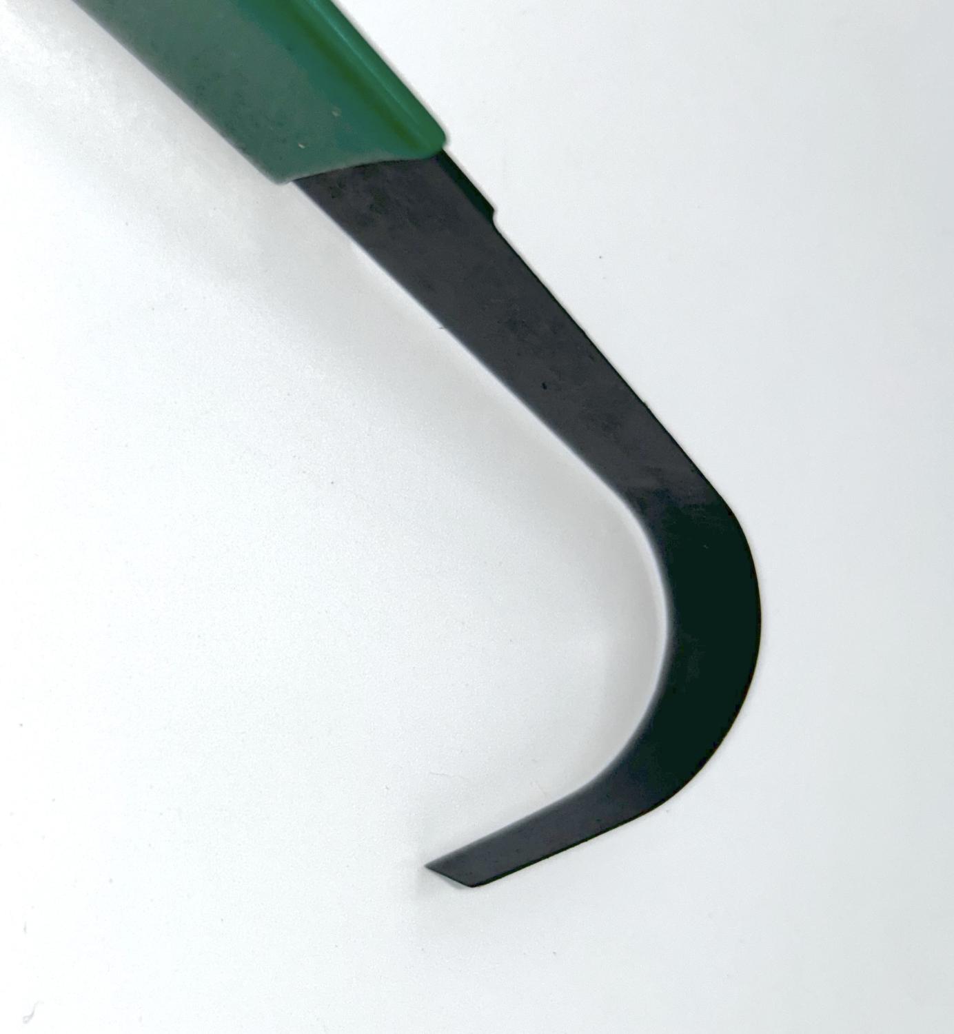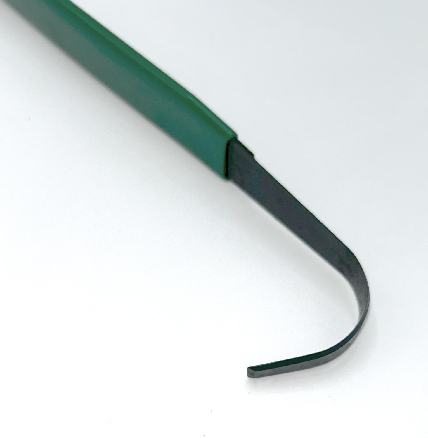 Rengöringsverktyg i stål i form av en krok. Kan även användas som räfflings- och avdrejningsverktyg. Verktyget är 15,5 cm lång och kroken 3,5 cm bred i öppningen.