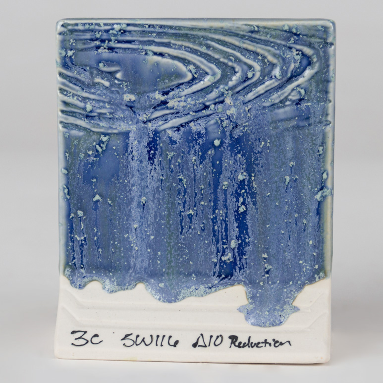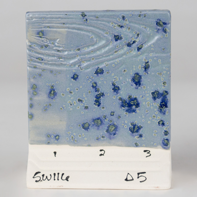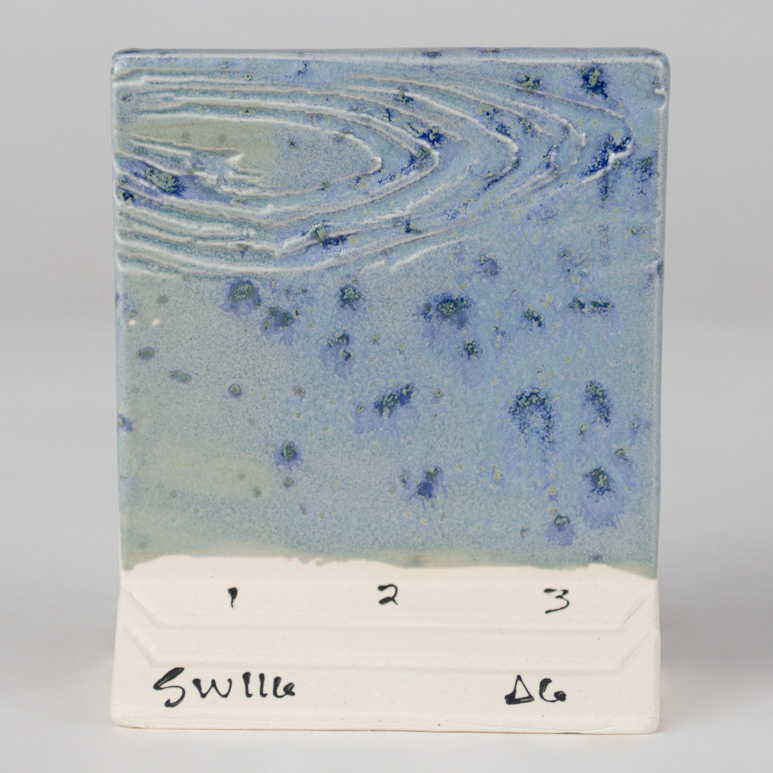 Kägla 6 oxidation (1230°C): Robin’s Egg är en gröntonad blå matt glasyr som innehåller en sandfärgad kristall. När kristallen smälter bildas en liten sandbrun blomma i glasyren, vilket skapar en fläckig, texturerad finish.