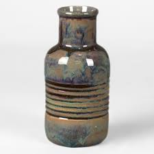 Kägla 06 (1000°C) oxidation: Slate är en blank, flammig mörk- och ljusgrå glasyr med en mörkbrun nyans.
