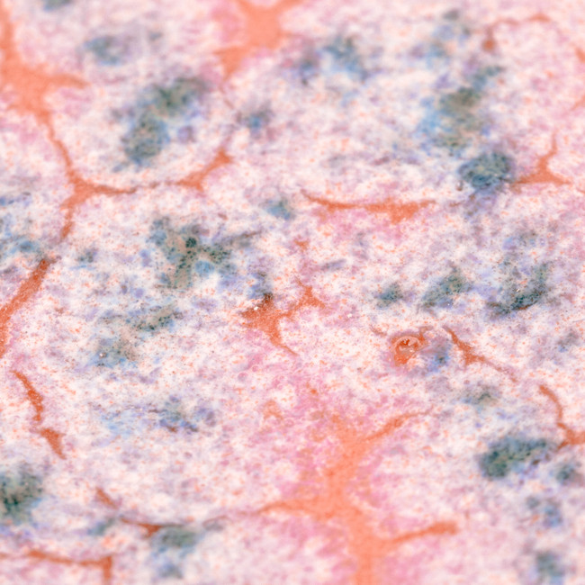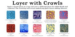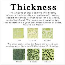Fler lager skapar större glasyrprickar, medan tunnare lager ger en finare pärleffekt. Fler lager ger fler sprickor. Bränn till kägla 5-6 (1210/1230 °C) för bästa resultat.