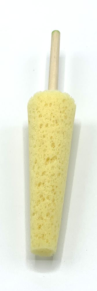 Tålig svamp på pinne för lera och greenware mm med trägrepp. Med denna svamp kan man rensa svår åtkommliga områden av föremålen eller applicera dekaler. Doppa den i vatten, pressa ut överflödigt vatten och sätt igång. Svampen är ca 8,7 cm lång och 15 till 32 mm bred, pinnen är 7 cm.