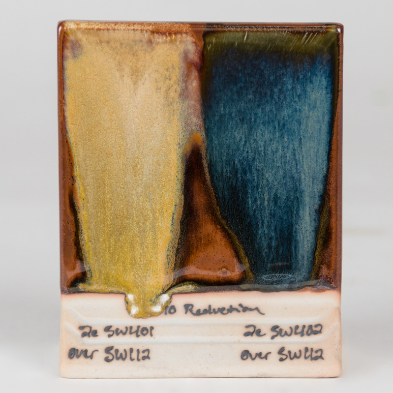 TIPS: Tunnare appliceringar ger mörkare bruna och röda nyanser; tyngre appliceringar ger en mer ogenomskinlig, ljusbrun yta. När Tiger's Eye ställs mot en annan glasyr smälter den försiktigt samman med den - SW-104 Black Walnut är en fin kompletterande glasyr att använda.