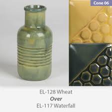 Elements™ och Elements™ Chunkies från Mayco är utformade för att simulera estetiken och rörelsen av stengodsglasyrer. Elements bränns vid kägla 06/05 (1000-1040°C). Elements™ är tvåfärgade glasyrer med en huvudfärg och en sekundär färg som kallas float. När Elements™ appliceras på detaljarbeten kommer floatfärgen att synas i sprickorna. Applicering och bränning påverkar också resultatet av huvudfärg eller float. För täckande resultat: lägg tre till fyra lager med mjuk solfjäder pensel. Nyansen på bilden visar bränning till 1000 °C (kägla 06). Kan användas på både lergods- och stengodslera. Vid stengodsbränning (över 1200°C) förändrar sig glasyren på ett spännande sätt och kan blir rinnig se under information. 473 ml.