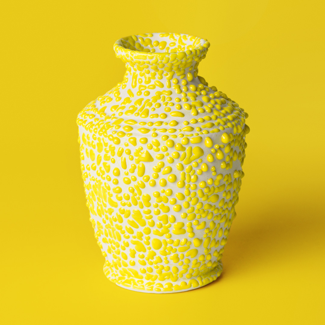 Bränn vid önskad temperatur, kägla 5-10 (1186 °C-1285 °C). kägla 5–6 (1186 °C till 1222 °C): Ger en upphöjd pärlstruktur med varierande former och storlekar. kägla 10 (1285 °C): Glasyren mjuknar och sprids, vilket kan förändra ytstrukturen. Testa alltid på din specifika lermassa. Resultaten kan variera beroende på material och brännkurvan.